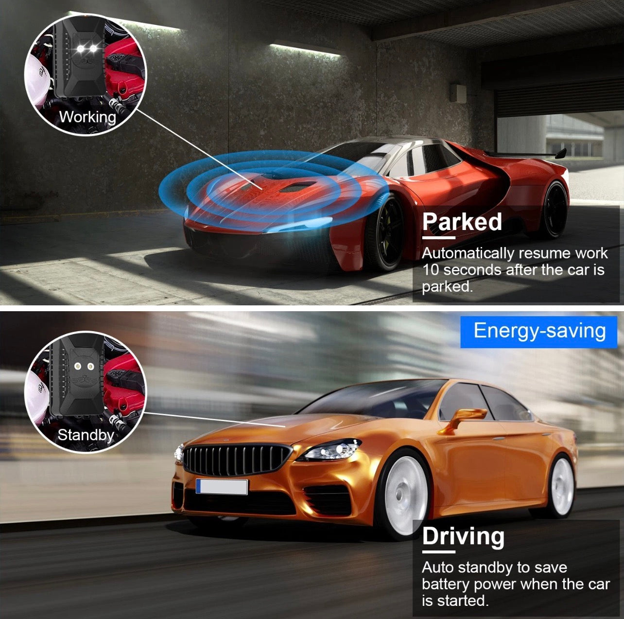 Automatically enters standby mode when the vehicle starts
