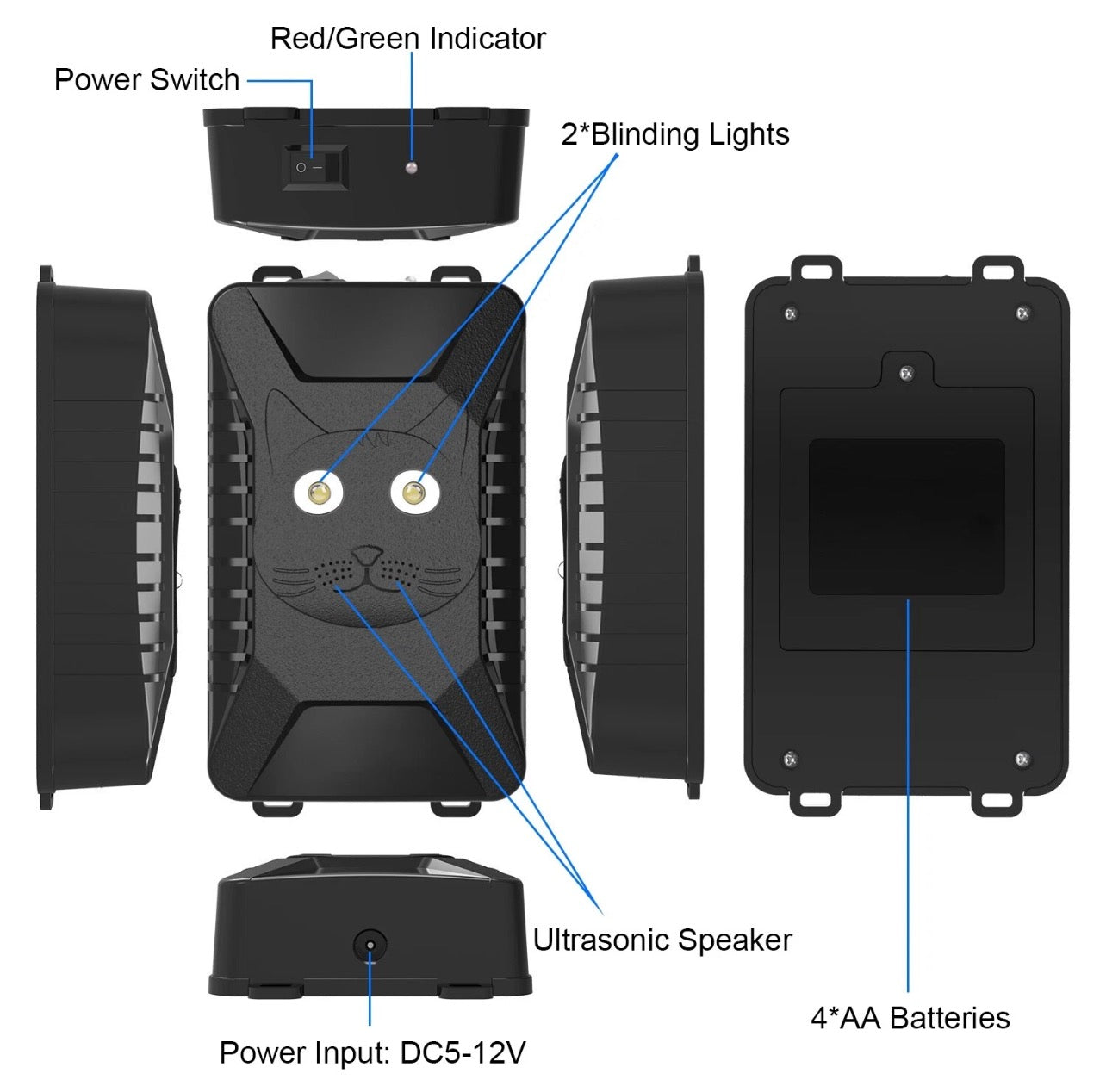 Please ensure the rodent repeller is connected to a DC 5–12V power source before use.