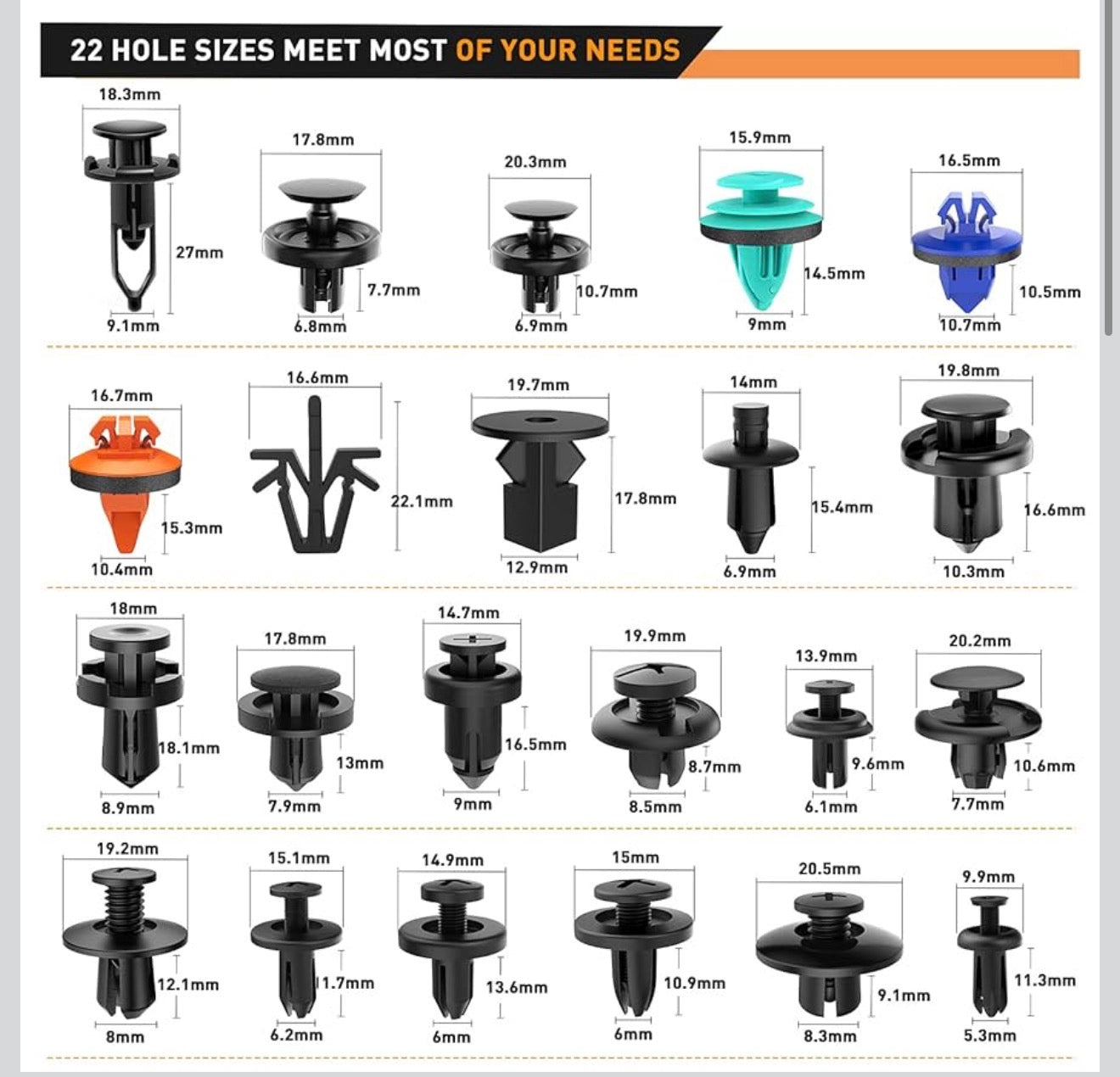 Whether you're replacing old clips or tackling a full body panel project, this fastener kit is your go-to solution for quick, secure repairs. Save time, avoid extra trips to the auto parts store, and get the job done right.